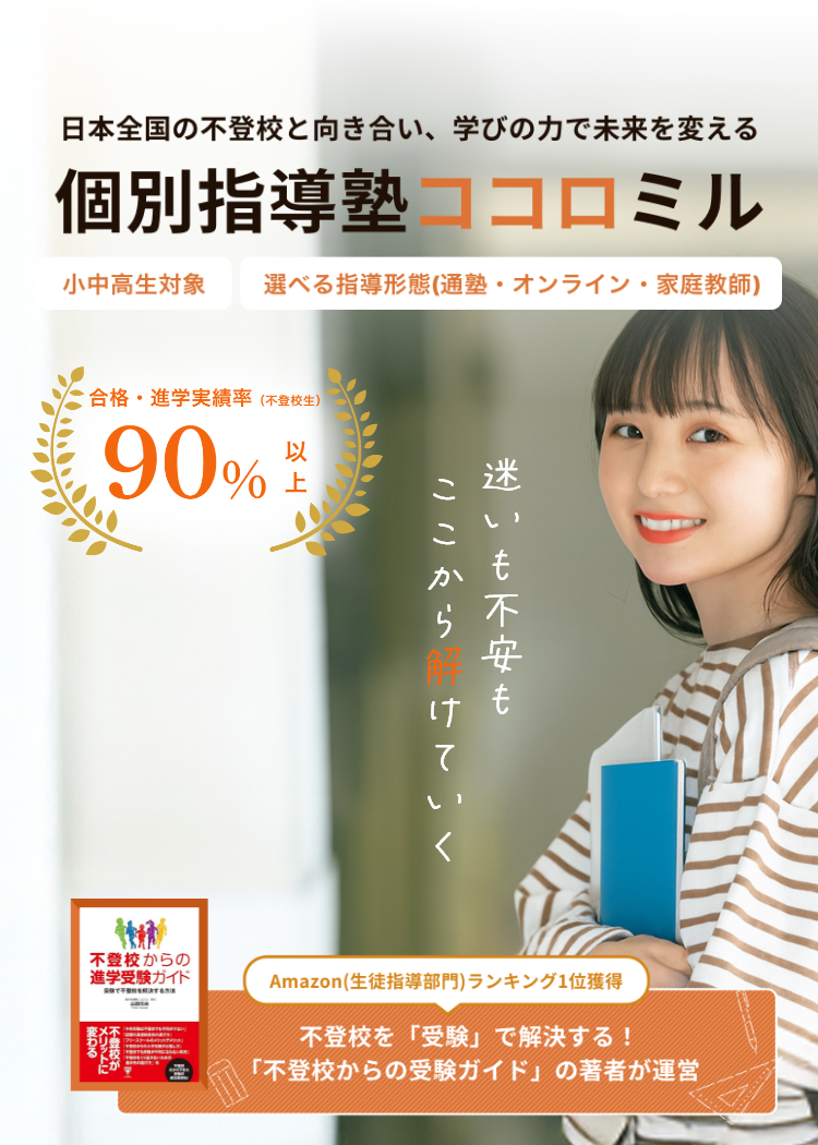 大きく広がります学力がつけば「選べる学校」が増え、受験情報をもとにその子に合った学校を一緒に探せます。欠席が合否に響かない学校など、ココロミルだからこそ提案できる選択肢があります。